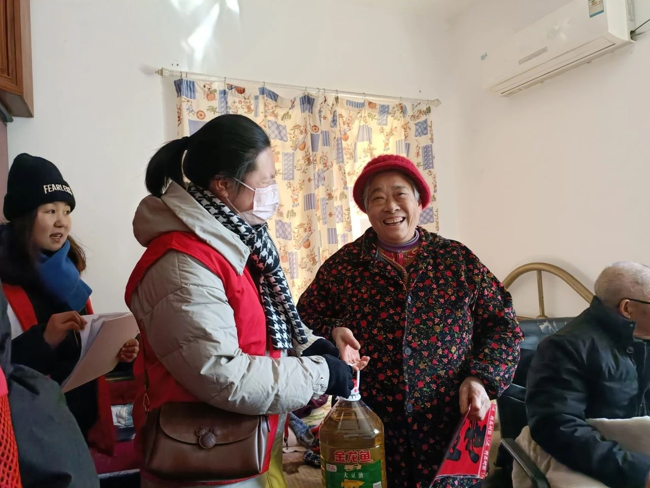 1月23日上午,在安庆市老龄委工作处的支持下,安庆市志愿服务联合会、安庆市宜秀区卓尔社会工作服务中心联合开展了“志愿同行 情暖‘银龄’”圆梦“微心愿”活动。志愿者们来到宜秀区大桥街道同庆南苑、同庆北苑、叶祠、朝阳四个社区,为7位老人送去米、油及福字、对联等物品,圆梦他们的“微心愿”。