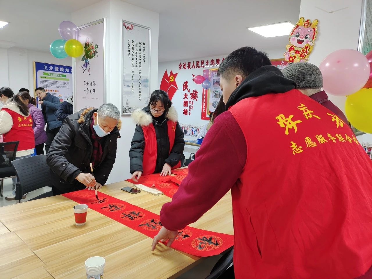 书法展示:春联写作区域吸引了众多社区老人的眼球。书法爱好者们挥毫泼墨,一幅幅寓意吉祥的春联跃然纸上,寄托着辞旧迎新的美好祝愿。老人们围在摊位前,欣赏着这些充满年味的作品,不仅为节日增添氛围,更为社区老年群体送去关怀。