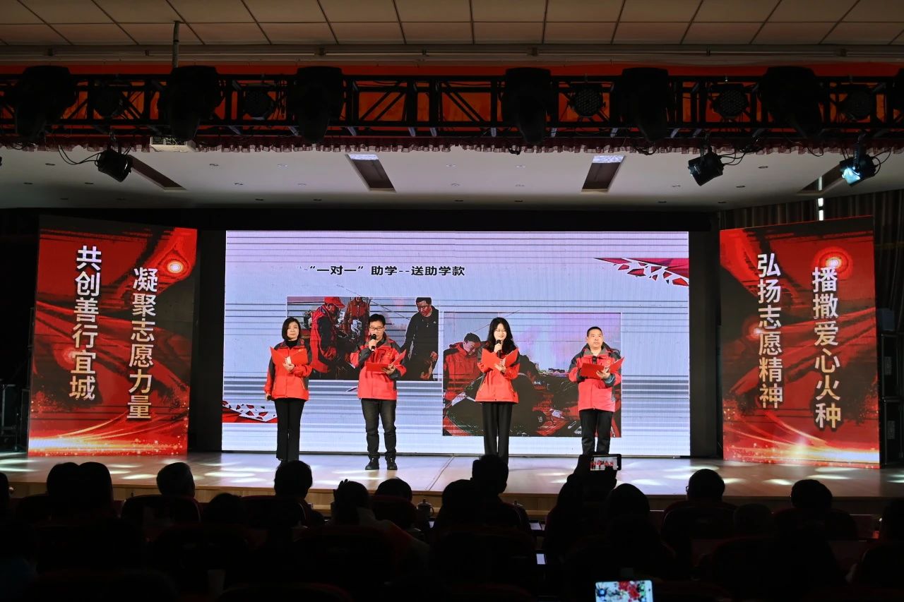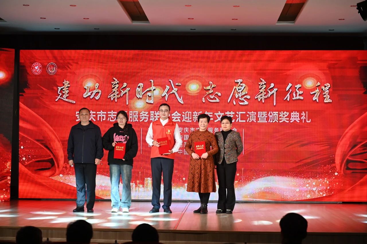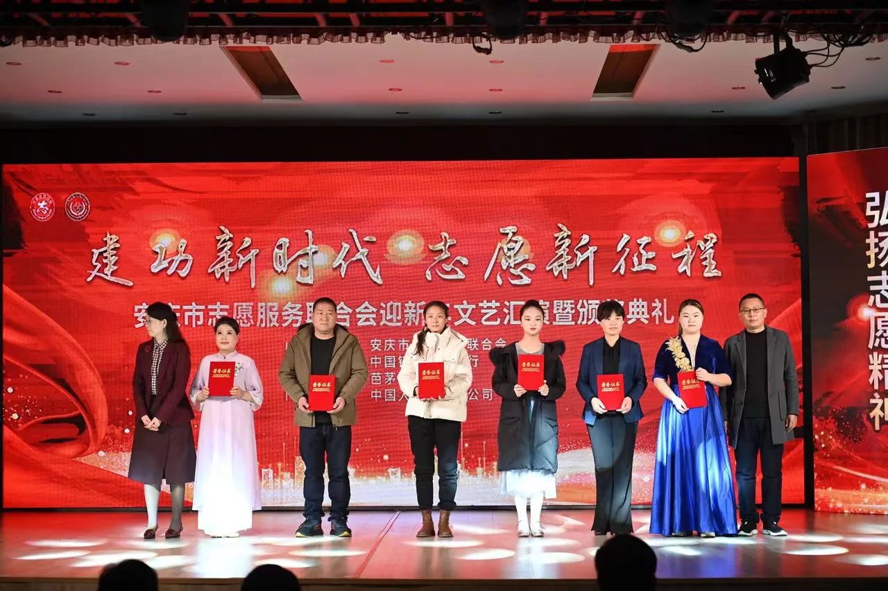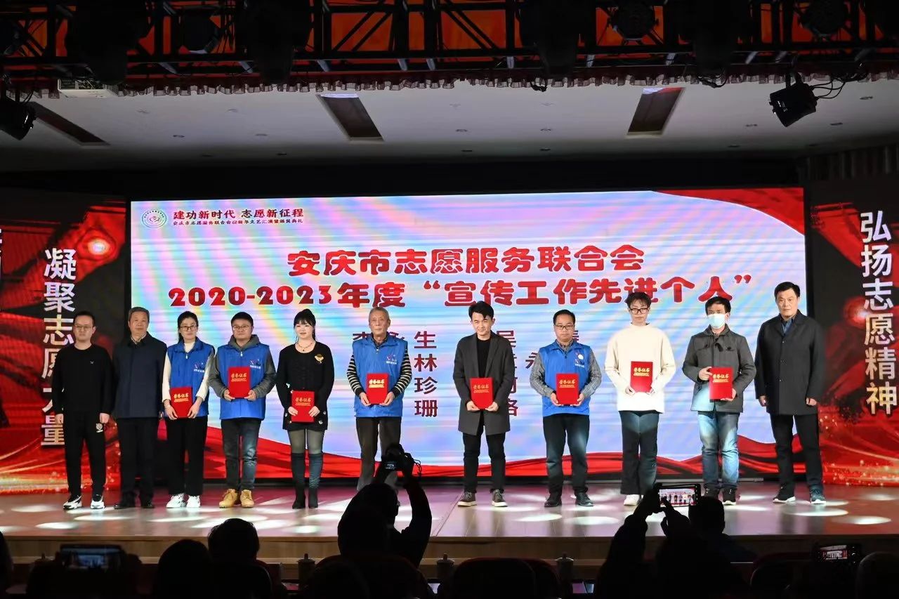 今年12月5日是第38个国际志愿者日。为弘扬志愿精神,传递公益力量,以“建功新时代 志愿新征程”为主题的安庆市志愿服务联合会迎新年文艺汇演暨颁奖典礼于12月10日在安庆市芭茅巷社居委一楼报告厅隆重举行。省政协常委、市科协主席洪爱敏,民进安庆市委主委、市地震局局长潘连宇,市民政局二级调研员许建南,市民政局党组成员、副局长鲁虹,市老龄委工作处副主任汪传文,市退役军人事务局副局长叶大炤,市总工会副主席赵新,团市委副书记鲍瑜斌,市残联副理事长陈嘉,中国银行安庆分行行政事业部主任杨青,中国人寿安庆分公司副总经理王有德,安庆市志愿服务联合会会长王奎出席活动。党的二十大代表、全国道德模范代表、中国好人代表、安庆市季评十佳学雷锋志愿服务典型代表、会员单位代表、市志愿服务联合会理事共300余人参加活动。