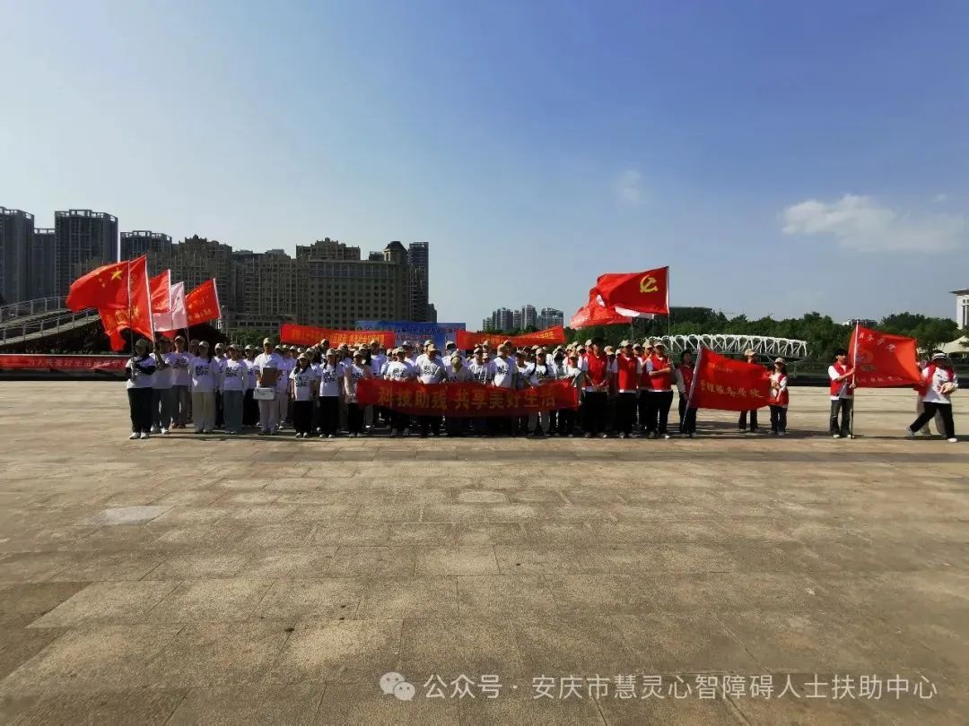 2024年5月15日下午,在第三十四个全国助残日来临之际,由迎江区残疾人联合会主办,迎江区智力残疾人及亲友协会协办,安庆市心智障碍人士扶助中心,安庆市迎江区慧灵残疾人就业服务中心,安庆市宜秀区慧灵农村社工站共同承办的“科技助残,共享美好生活”的大福快跑公益活动,在新河景观带法治公园广场举行。市城管局菱湖风景区大队党支部和支部书记舒波,安庆市职业技术学院管理服务学院党总支副书记丁凡,安庆市师范大学化工专业学院团委书记吴洁琼老师,安庆市医专护理学院学生党支部书记江莹老师及各校志愿服务队、妇联团委等群团组织、学员家长等约100多人参加了本次活动。