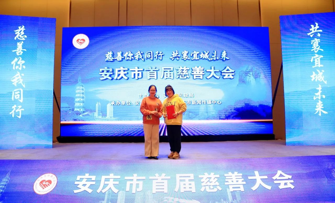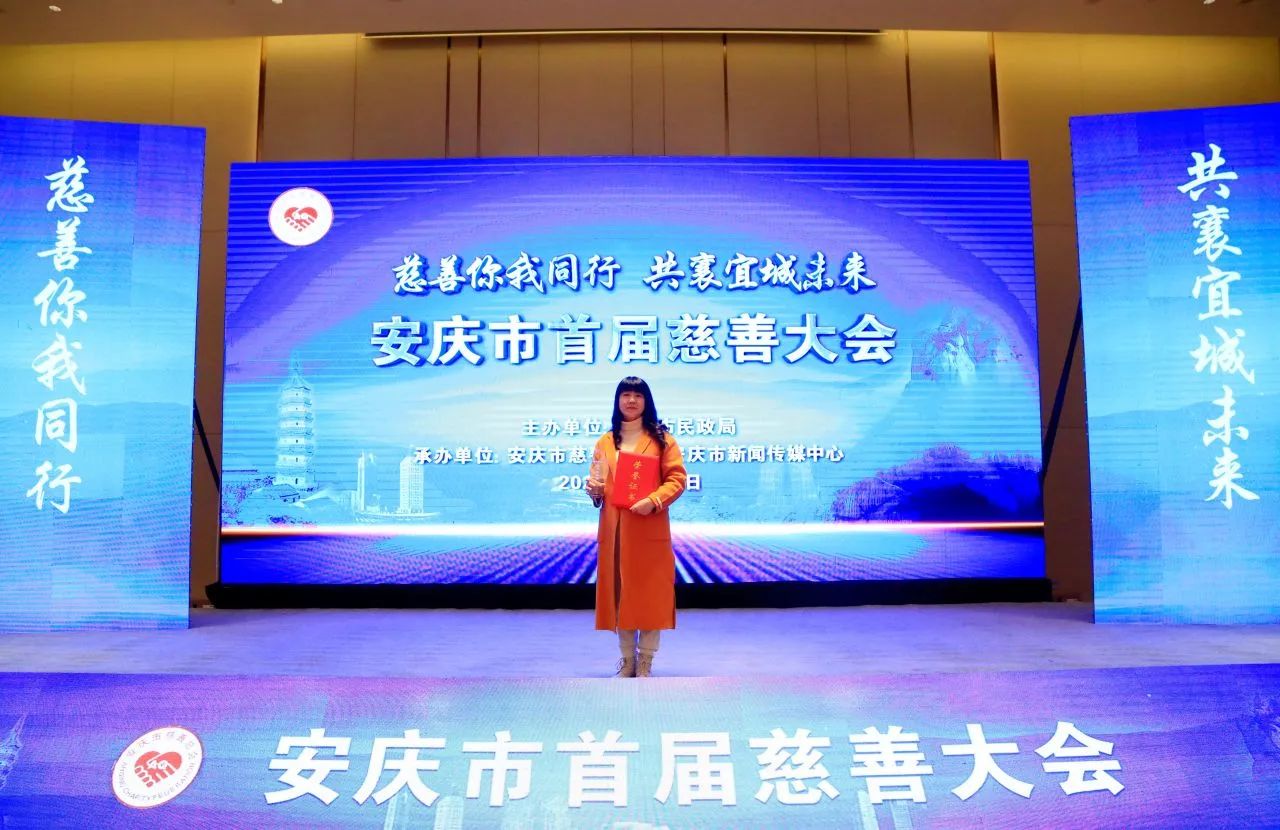 ▲怀宁县明霞社会工作服务中心丁明霞荣获安庆慈善奖“志愿服务奖”