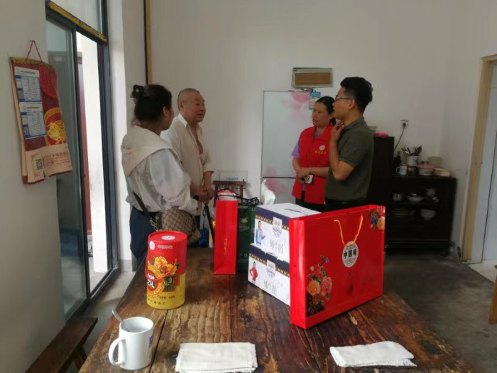 9月9日上午,疆内汇品品牌有限公司董事长李鑫在市志愿服务联合会及月形社区工作人员陪同下慰问社区26户困境老人,送上中秋祝福及精心准备的月饼、食用油、牛奶和土特产等慰问品,并与他们亲切交谈,详细了解他们的健康状况、经济来源和家庭基本情况,鼓励他们要树立战胜困难的信心,社会爱心人士会尽力为他们提供力所能及的帮助与支持。
