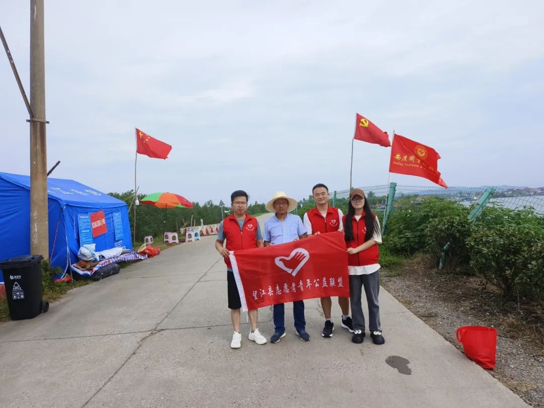 7月14日,望江县志愿者青年公益联盟带上风油精、花露水、人丹、蒲扇等所需物资来到华阳镇同马大堤防汛值班点,对驻守在一线的工作人员进行慰问。从交谈中志愿者们得知防汛人员均从各地抽调,有的来自安庆职业技术学院,有的来自凉泉乡各村。