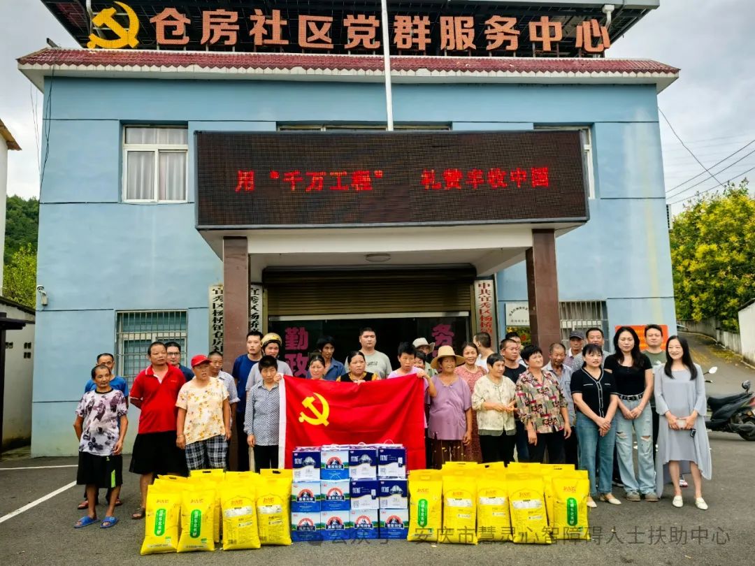 2024年9月12日,中秋前夕,安庆市慧灵负责人徐晓健、党支部书记吴贤保等到杨桥镇仓房村开展中秋节慰问农村残疾人活动。杨桥镇残联理事长金妮娜、副理事长许龙英,仓房社区党总支书记张飞等领导参加活动。