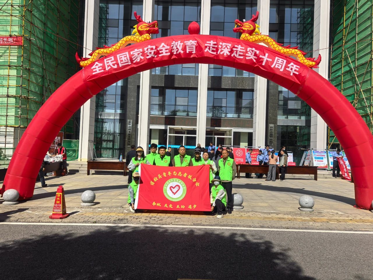 阳春4月,微风徐徐、暖意融融,松兹大地一片绿意盎然,活动当天八点半,12余名青年志愿者们陆续抵达政务中心,在会长虞鹏九的带领下,志愿者们换上绿马甲,在主办方精心分类的宣传展台前,向过往群众发放国家安全法、网络安全法、防范电信诈骗等主题的宣传彩页,并通过通俗易懂的语言和生动形象的事例,阐释维护国家安全的重大意义、危害国家安全的情形以及公民应遵守的义务等,引导广大群众了解国家安全知识,增强防范意识,建立捍卫国家安全的信念,树立总体国家安全的观念。