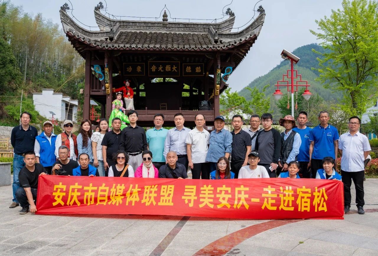4月19日下午2时,安庆市自媒体联盟一行30余人走进宿松县北浴乡廖河古戏台,开展以”寻美安庆,走进宿松”为主题的采风活动。此次活动旨在通过自媒体视角挖掘地方文化特色,助推传统戏曲艺术乡村旅游融合发展。