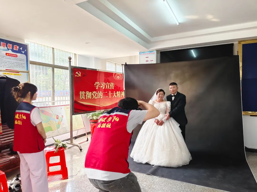 在母亲节来临之际,新派龍婚纱摄影联合宿松公益孚玉联络站于2025年4月28走进龙跃社区开展“岁月留痕·爱在母亲节”婚纱纪念照公益拍摄活动,为数十对中老年夫妻补拍结婚纪念照,用光影镌刻他们相濡以沫的深情。