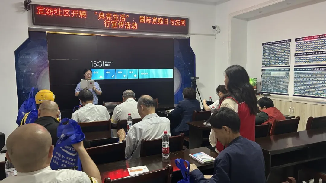 为迎接国际家庭日,宜纺社区志愿服务队开展“典亮生活”——与法同行宣传活动,致力于用法律知识筑牢家庭幸福基石,营造良好社区法治环境。